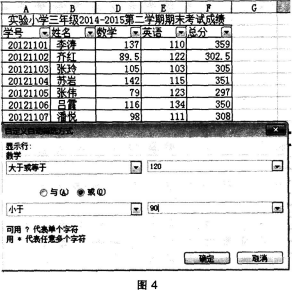 某Excel数据表中自动筛选操作界面如图4,下列说法正确的是()。 A.自动筛选的数据结果共有9条记录 B.筛选条件为“数学>=120”或“数学<...