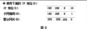 某台计算机的TCP/IP属性设置见图6,其中两处设置有误,下列改正办法正确的是()。 A.IP地址改为192.168.8.1.子网掩码改为192.168...