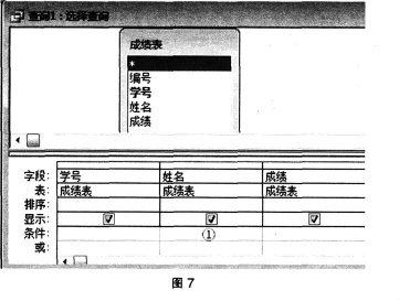 问题 如果想要查询姓名为三个字的学生的成绩,在图7的“①”处应该键入()。