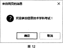 问题 下列网页制作脚本语句中,能弹出如图12所示对话框的是()。