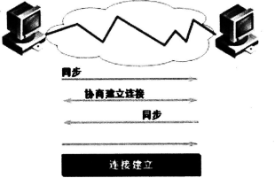 问题 如图,两台主机之间建立的是面向连接的会话,该连接的建立采用的传输层协议是()。