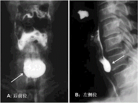问题 患者女,30岁,数年来吞咽不适,有时可闻及“咕咕”声,并有吞咽困难,时常呃逆,口臭,行X线钡餐检查,结果如下图所示,应诊断为