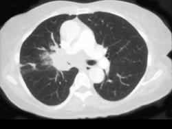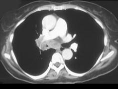 问题 男,56岁,咳嗽,咯血1月余,有吸烟史30余年,结合CT检查选出最可能的诊断 ( )