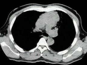 问题 男,26岁,自觉肌无力两周,胸片检查见纵隔增宽,CT检查如图,最可能的诊断为 ( )
