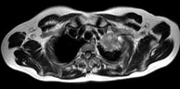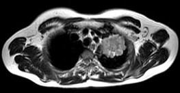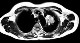 男,68岁,声音嘶哑半月,行MRI检查如图,其最可能的诊断为 ( )A、左上肺癌B、左上肺动静脉瘤C、左上肺结核球D、左上肺炎...