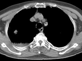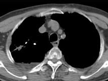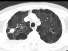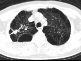 男,76岁,气喘数年,胸痛一月余,结合影像图像,选择最可能的诊断 ( )A、右上肺错构瘤B、右上肺肉瘤C、肺间质纤维化D、右上...