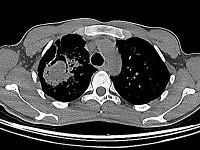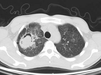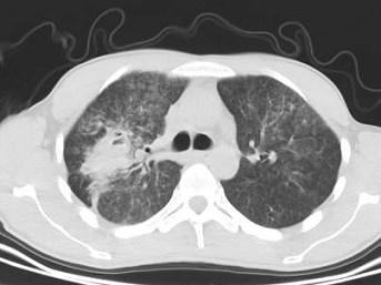 问题 男,32岁,咯血,咳痰一周,胸部CT如图,最可能的诊断为 ( )