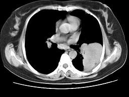 问题 女,52岁,左侧背痛一月,胸部CT如图,最可能的诊断为 ( )