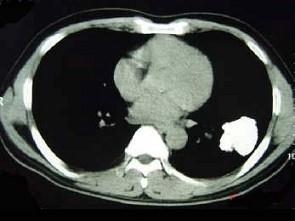 问题 男,45岁,体检发现左下肺占位,CT检查如图,最可能的诊断为 ( )