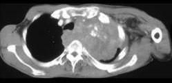 问题 男,68岁,咳嗽,胸痛,呼吸困难伴四肢无力半月余,请结合影像学检查,选出最可能的诊断 ( )