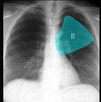 问题 在图所示正常胸部X线影像图像上,该英文字母所代表的肺段为 ( )