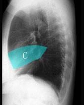 在图所示正常胸部X线影像图像上,该英文字母所代表的肺段为 ( )A、舌叶上段B、前段C、后段D、尖后段E、尖段