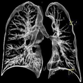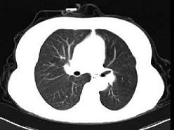 男,45岁,外伤后行CT检查如图,最可能的诊断为 ( )A、肺大疱B、支气管囊肿并感染C、左主支气管断裂D、畸胎瘤E、支气管肺炎