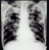 问题 男,45岁,HBV阳性十年,胸痛一月伴咳嗽,咯血一天,胸片如图,选择最可能的诊断 ( )