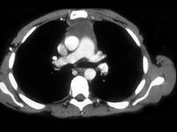 问题 男,64岁,胸部隐痛伴眼睑下垂2个月余,请结合影像学检查图,选出最可能的诊断 ( )