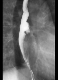 某患者因胸骨后不适行X线钡餐检查,结果如图所示,诊断为 ( )A、食管憩室B、贲门癌C、食管平滑肌瘤D、贲门失弛缓症E、食管癌