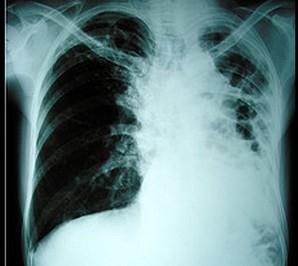问题 患者因咳嗽、胸痛、乏力入院,体检时发现左肺呼吸音减弱,X线胸片如图所示,诊断为 ( )