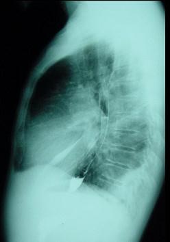 对如下心脏左侧位片描述正确的是 ( )A、正常心脏B、以上均错C、右心房增大D、右心室增大E、左心房Ⅰ度增大