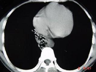 男,26岁,肺部感染后反复咳嗽咳痰一月,CT检查如图,最可能的诊断为 ( )A、支气管扩张并感染B、肺癌C、右下肺隔离症并感染D、...