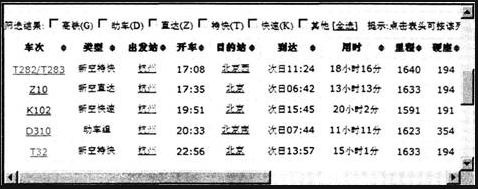问题 小明查询到的火车车次信息如图所示: 若只需列出“新空特快”类型的车次,应使用的筛选条件是(  )。