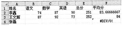 张磊同学的成绩出现了如图所示的错误,是因为(  )。 A.使用了错误的公式 B.没有成绩.造成除数为0的错误 C.没有使用绝对地址 D....
