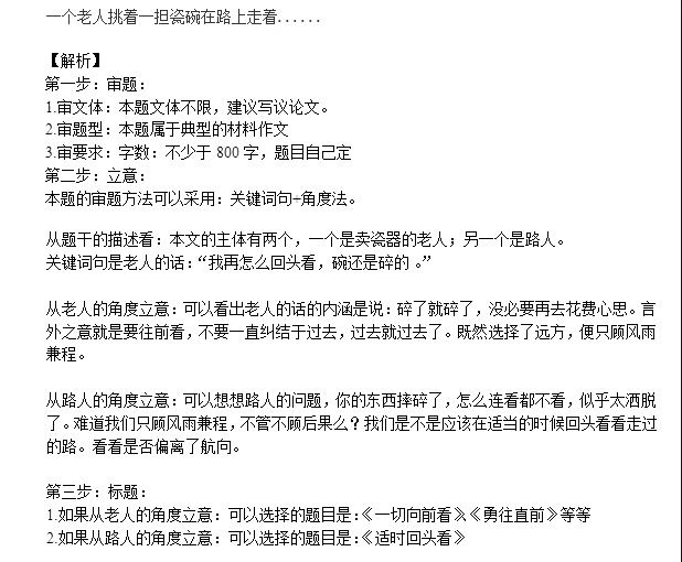 问题 一个老人挑着一旦瓷碗,在路上走着。突然一只碗掉到地上摔碎了。老人头也不回继续向前走。路人很奇怪,便问:“你的碗摔碎了,为什么你看都不看呢?”老人说:“我再怎么回头看,碗还是碎的。” 要求:文体自选,立意自拟,标题自拟;不少于800字。