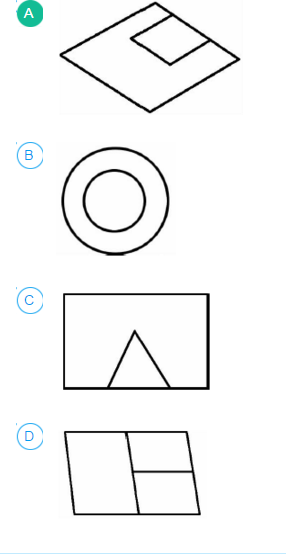 解析 观察例图,发现四个图形的一致性规律是外面的图形与内部的图形是相似图形,且内部图形的一条边线与外部图形的对应边线重合。四个选项中,只有A项满足这一条件。