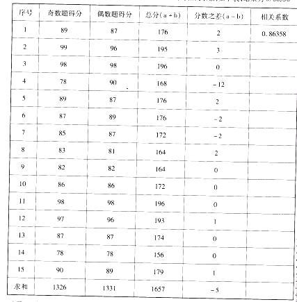 15名学生的语文测验成绩见下表,用分半法斯皮尔曼一布朗校正公式估计测验的信度。
