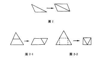 请认真阅读下列材料,并按要求作答。在进行“三角形面积”教学时,指导面积计算公式一般采用两种方法:一种是把两个完全一样的三角形拼成一个平行四边形(见图1),...