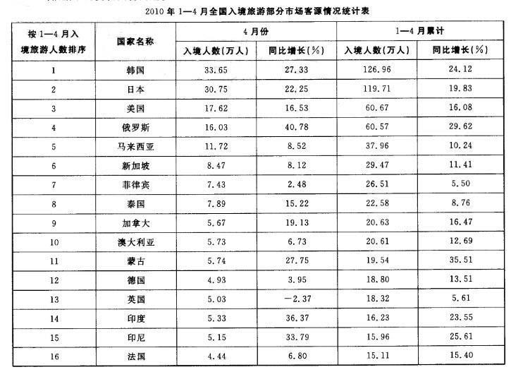 根据下列资料回答问题。 2009年1-3月,入境旅游的日本游客人数约为( )。A. 105. 86 万人 B. 91.11 万人 C. 88. ...