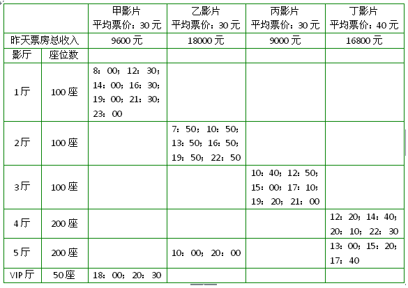 问题 影院一天总共放映x场,其中某部电影放y场,排片率就是y/x100%,那么四部影片中排片率最高的影片是哪部( )