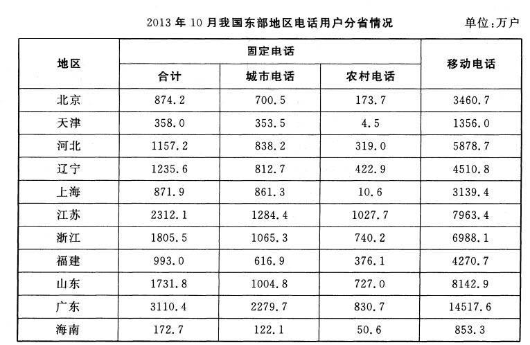 解析 2013年10月移动互联网用户总数达到8.17亿户,其中3G上网用户比例达到34.5%。但综合材料提供的信息,无法推出2012年10月3G上网用户占移动互联网用户总数的比例。故本题应选D。