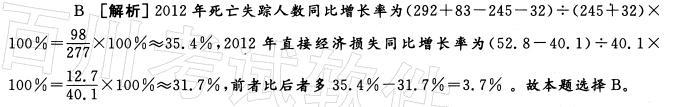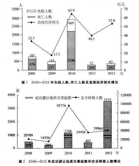 问题 2012年,全国共发生各类地质灾害14322起,其中滑坡10888起、泥石流922起、地面塌陷347起、地裂缝55处、地面沉降22起。造成292人死亡、83人失踪、259人受伤,造成直接经济损失52.8亿元。与上年相比,发生数量下降8.6%。全年特大型地质灾害防治专项资金投入35亿元,成功预报地质灾害3532起,避免人员伤亡39964人,避免直接经济损失8.1亿元。 2012年死亡失踪人数同比增长率比2012年直接经济损失同比增长率多()个百分点。