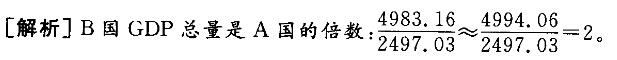 问题 2009年,A国GDP总量为2497. 03亿美元,B国GDP总量为4983. 16亿美元。则2009年B国GDP总量是A国的( )倍。