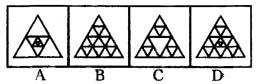 解析 元素数量递增规律。后一个三角形都是在前一个三角形内连接各边中点增加一个更靠里层的三角形。因此答案选择A。