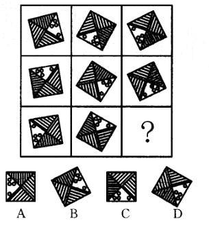 解析 题干中的八个图形都是同一个图形旋转一定角度得到的,选项中只有B项可以旋转得到。