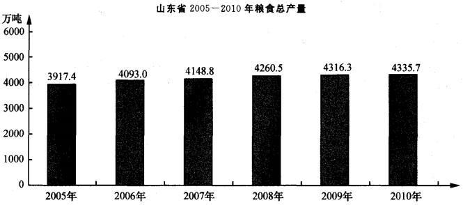 问题 2010年山东省经济实现平稳较快发展。初步核箅,全省实现生产总傕(GDP)39416. 2亿元,按可比价格计算,比上年增长12.5%。其中,第一产业增加值增长3. 6%;第二产业增加值增长13.4%;第三产业增加值增长13.0%。产业结构调整取得明显成效,三次产业比例为 9.1:54.3:36.6。 农林牧渔业平稳发展。农业增加值2146. 6亿元,比上年增长2.5%;林业增加值60. 7亿元,增长9. 9% ;牧业增加值727. 0亿元,增长4. 2% ;渔业增加值521. 4亿元,增长4. 9% ;农林牧渔服务业增加值132. 5亿元,增长9.9%。 主要农牧产品产量稳定增加。粮食连续8年增产,总产量达到4335. 7万吨。新建瓜、菜、果、茶标准化基地606万亩,无公害农产品、绿色食品基地面积分别达到1555万亩和817万亩。农产品出口突破百亿美元,达到127. 1亿美元,增长30.1%。 能够从上述资料中推出的是( )。 A. 2006—2010年,山东省粮食总产量的增长量均不相同 B. 2010年,山东省无公害农产品基地面积比绿色产品基地面积多将近90% C. 2010年,山东省主要牧产品产量均较去年有所提高 D. 2010年,山东省渔业增加值增长量不到农林牧渔服务业增加值增长量的2倍