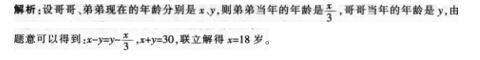 哥哥现在的年龄是弟弟当年年龄的3倍,哥哥当年的年龄与弟弟现在的年龄相同,哥哥与弟弟现在的年龄和是30岁。问哥哥现在多少岁?A.15 B.16 C.18...