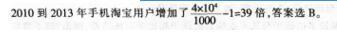 解析 由材料可知2010年手机淘宝用户为1000万,2013年手机淘宝用户突破4亿,所以