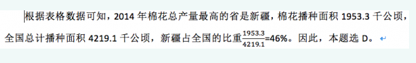 问题 2014年全国棉花播放面积4219.1千公顷,比2013年减少2.9%。棉花总产量616.1万吨,比2013年减产2.2%。 2014年棉花产量前十位产区生产情况 2014年棉花总产量最高的省(区)播种面积占全国棉花播种面积的比重约为: