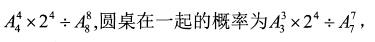 问题 四对情侣排队买票参加圆桌心跳派对,求四对情侣排队买票时,每队情侣必须站在一起的概率是圆桌每对情侣必须坐在一起概率的几倍( )