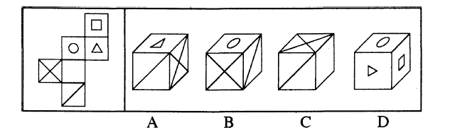 问题 左边给定的是纸盒的外表面,下列哪一项能由它折叠而成?