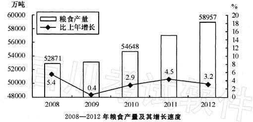 解析 A选项,根据第101题的结果,2012年我国粮食种植面积的增长率=6.2‰B选项,直接读数可知,2012年的玉米产量为20812万吨,小于粮食产量的一半58957÷2=29478.5(万吨),错误。 C选项,按照2012年的增长速度,2013年我国的粮食产量=58957×(1+3.2%)=60000+(万吨),正确,当选。 D选项,2012年我国油料种植面积的增长率年油料产量的增长率5.1%,故2012年油料的亩均产量是增加的,错误。