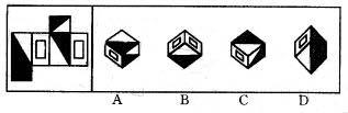 解析 有空白长方形的两个面是相对面,排除B。每一个有空白长方形的相邻面有两条共同的阴影边,排除C。有空白长方形的面的相邻面没有左下角是阴影的面,排除A。正确答案为D。