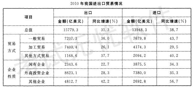 2010年,我国进出口贸易总额为29727. 6亿美元,同比增长34. 7%。 2010年,我国机电产品出口 9334. 3亿美元,同比增加30.9%;高...
