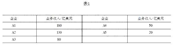 (一) 已知某国电信市场业务收入总量为500亿美元,其中排名前五位的电信企业业务收入下如表1所示: 假定某一时期该国电信市场的行业集中度指标CR=10...