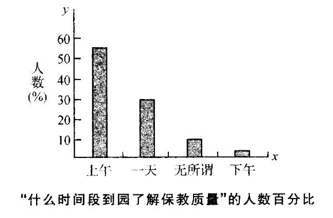 问题 有研究者对幼儿园园长、教师做了一个调查,调查题因是“要全面真实地了解你园的保教质量,你认为最好什么时间段到你园? ”调查结果如下图所示。