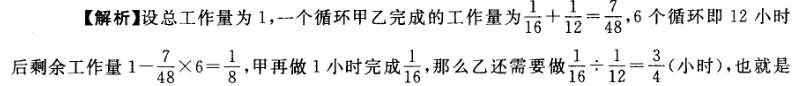 问题 单独完成某项工作,甲需要16小时,乙需要12小时,如果按照甲、乙、甲、乙、……的顺序轮流工作,每次1小时,那么完成这项工作需要多长时间?( ) A. 13小时40分钟 B. 13小时45分钟 C. 13小时50分钟 D. 14小时