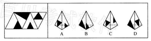 解析 观察发现A、C的左侧面相同,其右侧面应如C所示,A错误、C正确;B中两个黑色部分不会有交点;D中左边黑三角形的方向错误。