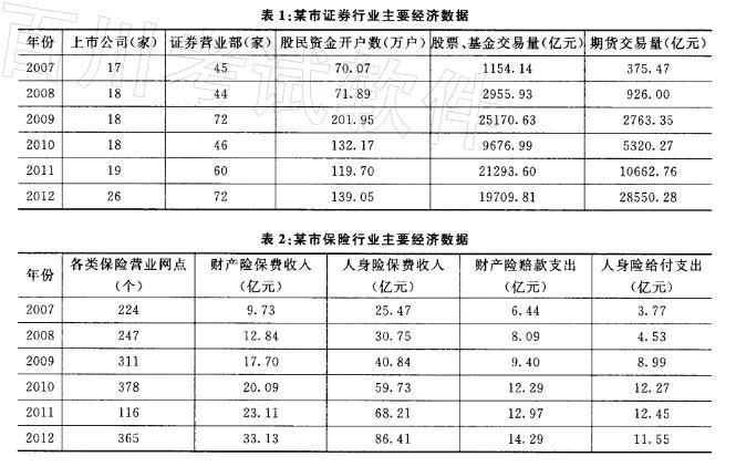 解析 根据表1可知,2012年股民资金开户数为139. 05(万户),2007年为70. 07(万户),